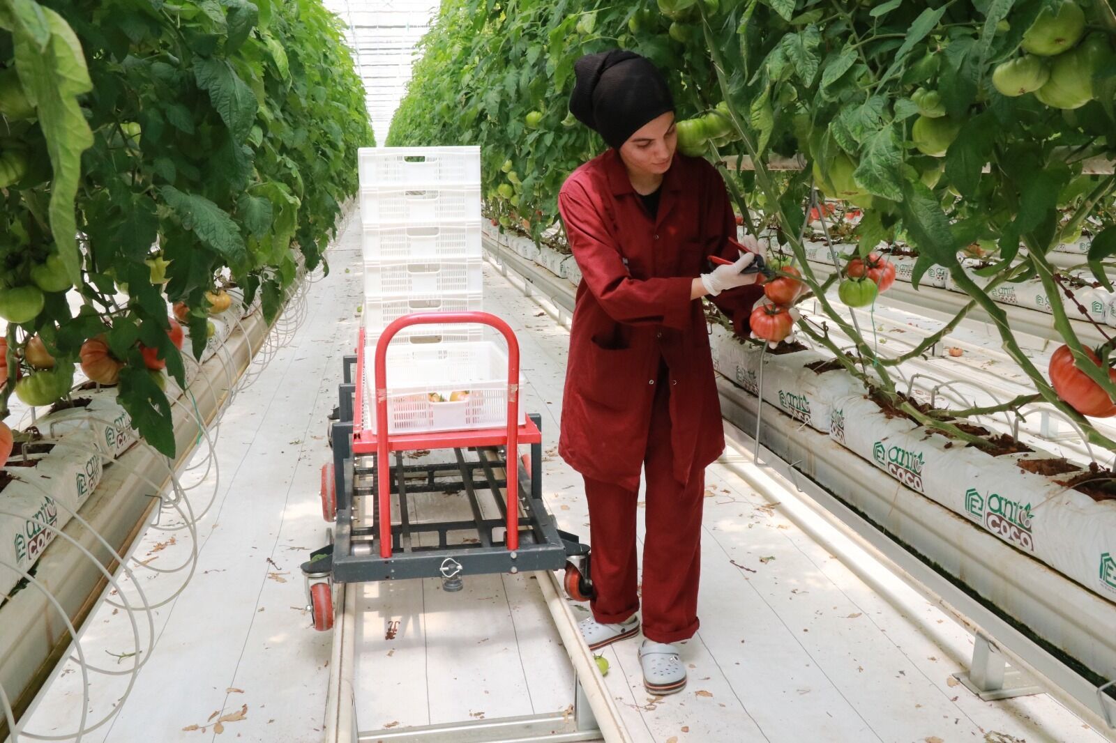 Projenin mühendislerinden Mehmet Davşan, yaklaşık 5 aydır pembe domates üretimi yaptıklarını ifade ederek, “Ürünlerimiz hem yurt içine hem de yurt dışına gönderiliyor. Bölgede ciddi bir istihdam oluşturduk. Tam kapasite çalışıyoruz ve hedefimiz dönüm başına 20 ton verim elde etmek.” dedi.