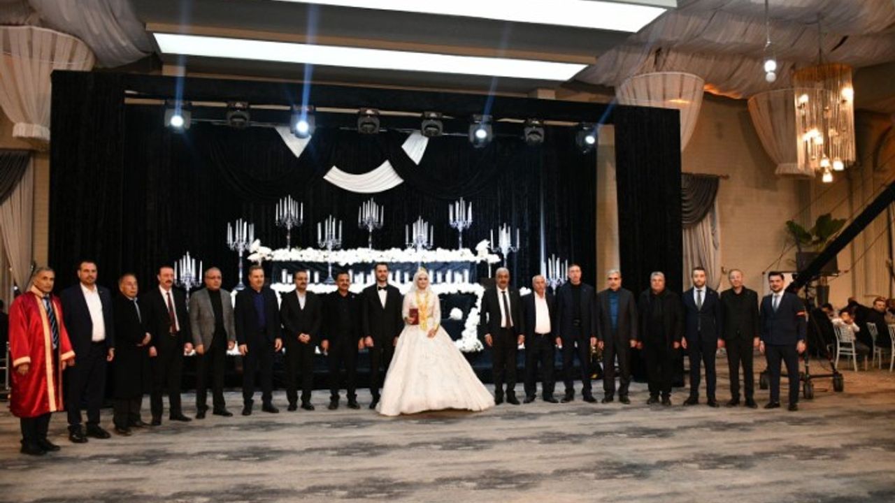 Düğün töreninde nikâh şahitliği yapan Aksoy, genç çifte bir ömür boyu sağlık, huzur ve mutluluk temennisinde bulundu.