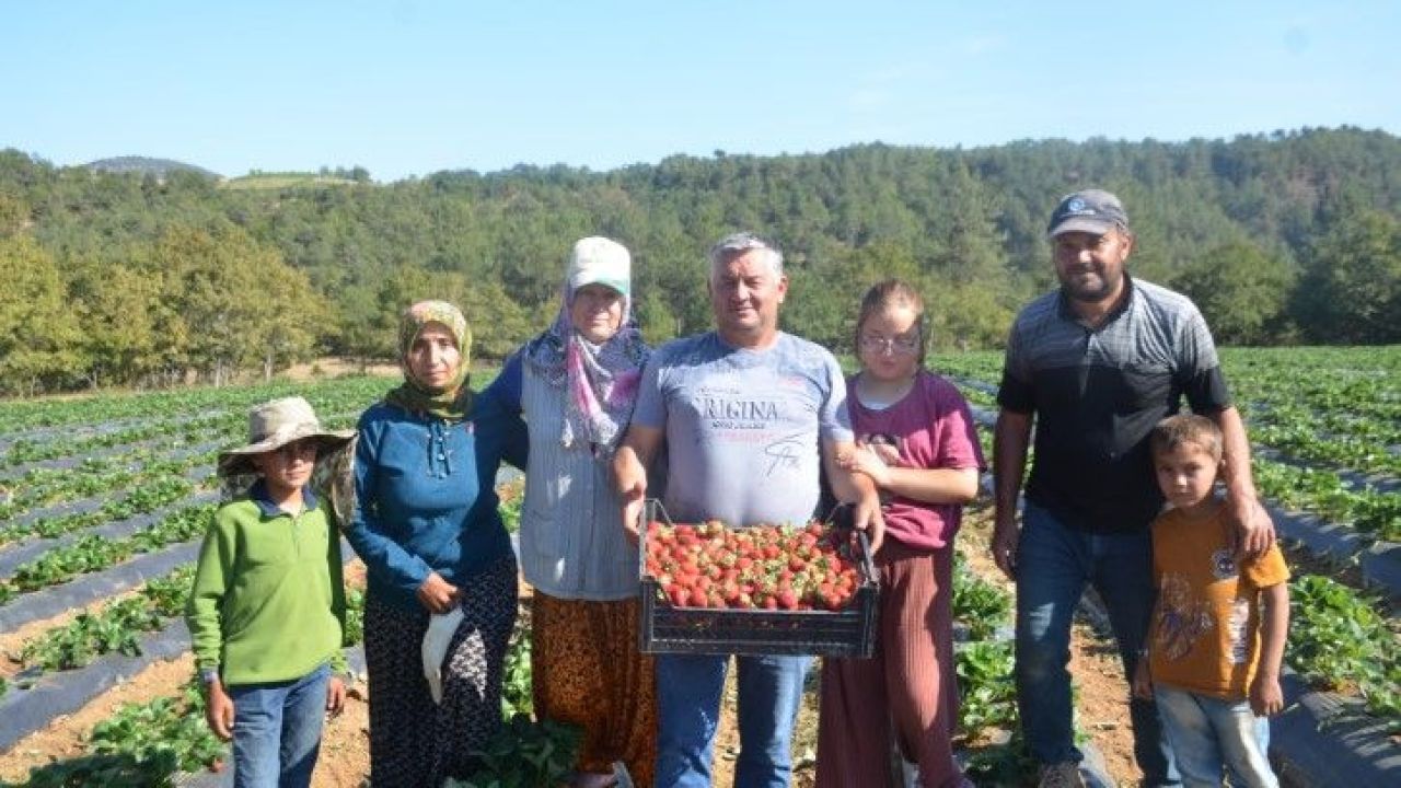 Osmaneli ilçesi Ağlan Köyü’nde 5 yıldır çilek yetiştiren çift, üretimlerini 5 yılda 30 kat artırarak yıllık 40 tona ulaştırdı ve pazarlamada zorluk yaşamıyor.