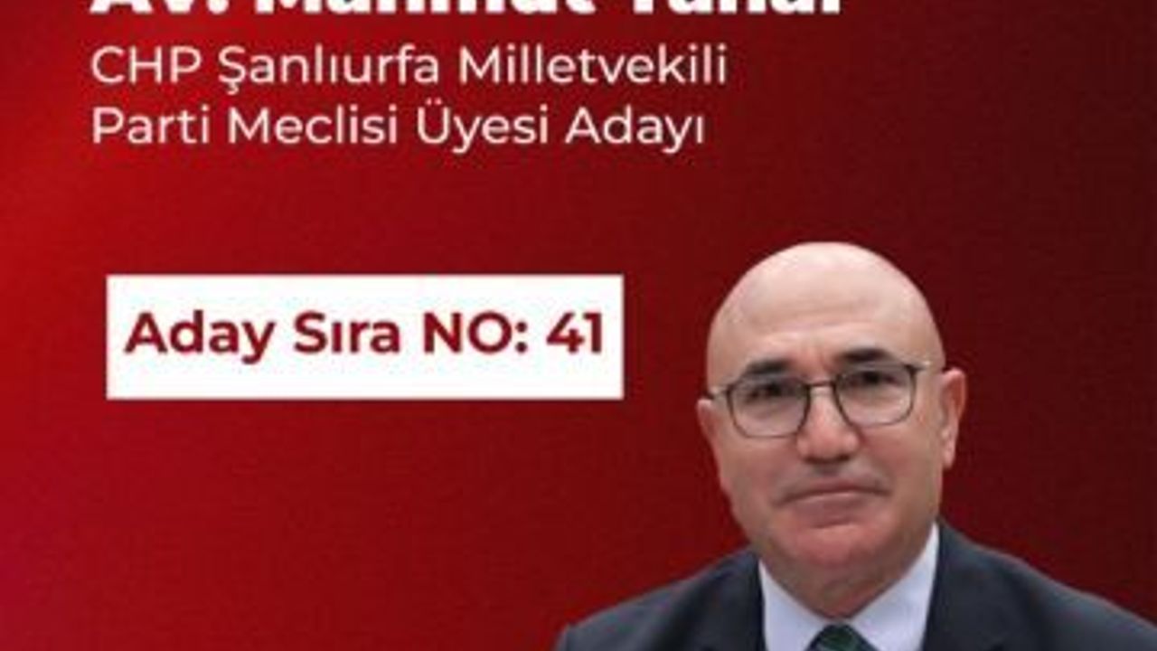 Cumhuriyet Halk Partisi Şanlıurfa Milletvekili Mahmut Tanal, Parti Meclisi üyeliği için aday olduğunu duyurdu. Adaylık sırasının 41 olduğunu belirten Tanal, eşitlik, adalet ve demokrasi mücadelesi için yola çıktığını ifade etti.