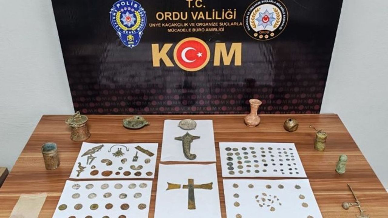 İl Emniyet Müdürlüğü Kaçakçılık ve Organize Suçlarla Mücadele Şube Müdürlüğü ekipleri, Fatsa ilçesinde ikamet eden bir şahsın elinde tarihi objeler olduğunu ve bunları satmak için müşteri aradığı yönünde bilgiye ulaştı. Bunun üzerine Fatsa İlçe Emniyet Müdürlüğü görevlileri ile birlikte şüphelinin ev ve işyerinde yapılan aramalarda, 133 adet çeşitli tarihi obje ile 10 gram ağırlığında altın tozu ele geçirildi.