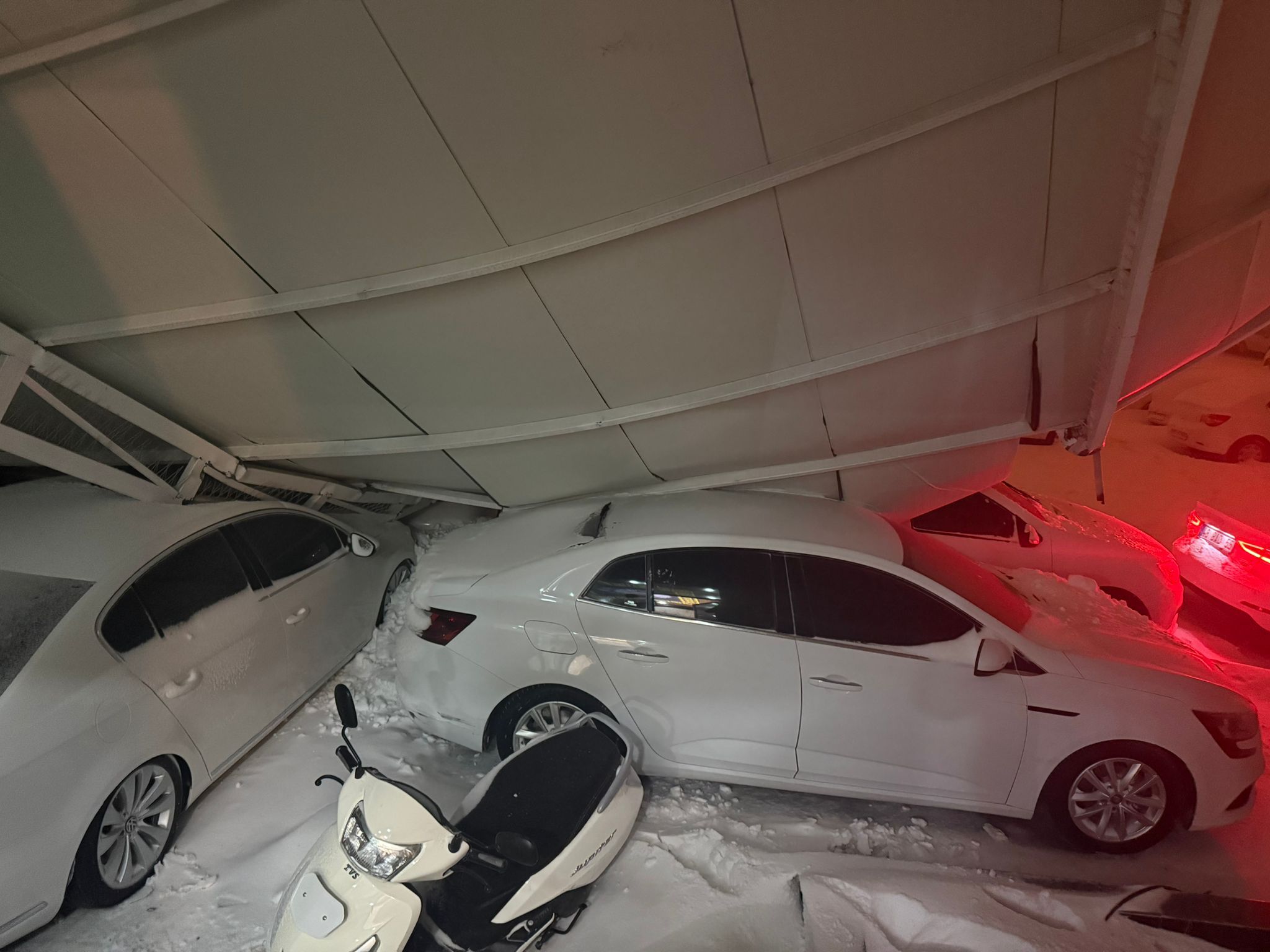 Şanlıurfa’da etkili olan olumsuz hava koşulları ve sağanak kar yağışı, yaşamı olumsuz etkiledi. Eyyübiye ilçesinde bulunan Oto Galericiler Sitesi’nde, şiddetli hava koşulları nedeniyle bazı sundurmalar devrildi. Devrilen sundurmaların bir kısmı park hâlindeki araçların üzerine düşerken, olayda maddi hasar meydana geldi.