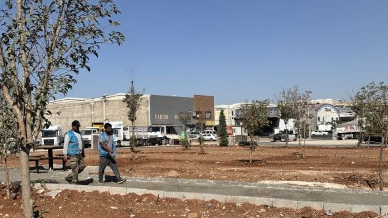 Ağaçlandırma çalışmalarının sürdüğü park, önümüzdeki günlerde çimlendirilerek bölge esnafının kullanımına sunulacak.