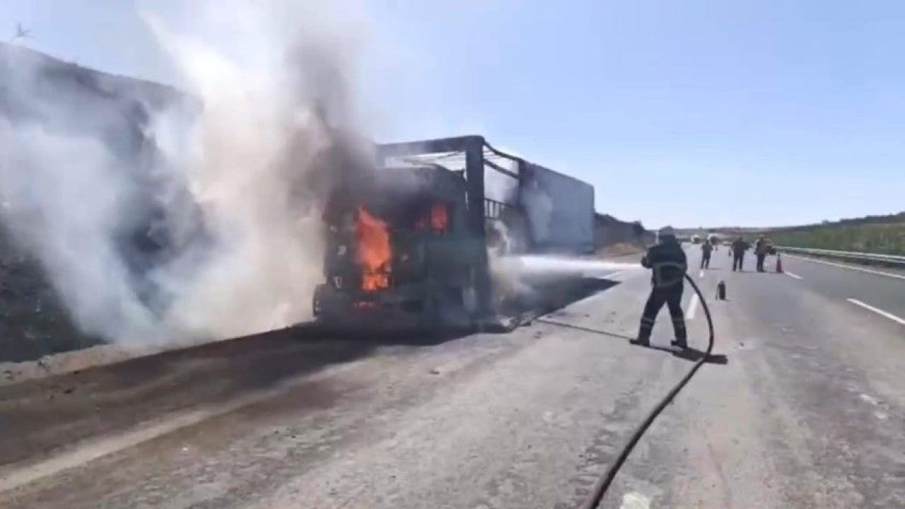 Olay, Şanlıurfa-Gaziantep Otoyolu’nun Birecik mevkiinde meydana geldi. Henüz sürücüsü ve plakası belirlenemeyen tırın dorsesindeki saman balyaları bilinmeyen bir nedenle alev aldı. Yangını fark eden sürücü, aracı emniyet şeridine çekerek durumu itfaiyeye bildirdi.