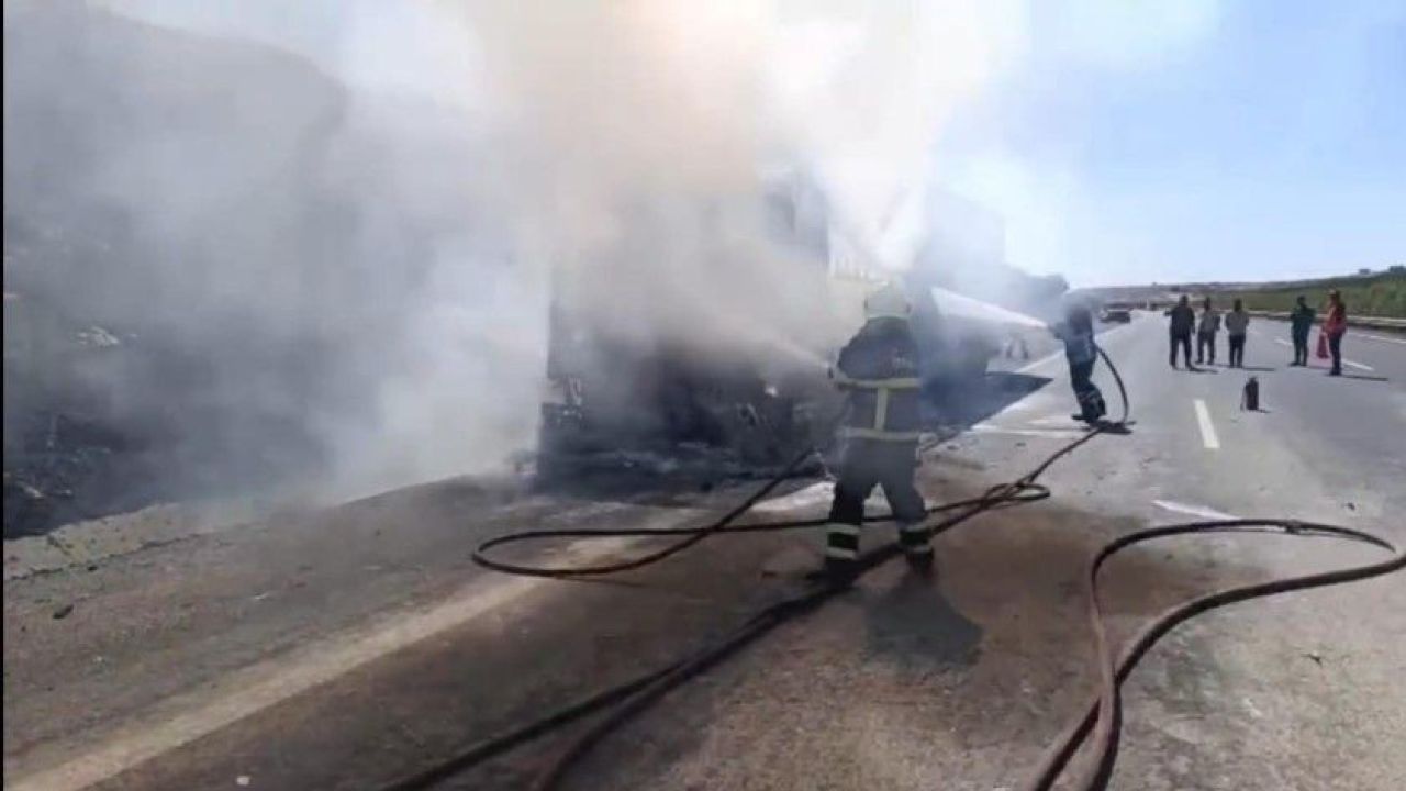 Şanlıurfa'nın Birecik ilçesinde saman yüklü bir tırda çıkan yangın aracı tamamen kullanılamaz hale getirdi.