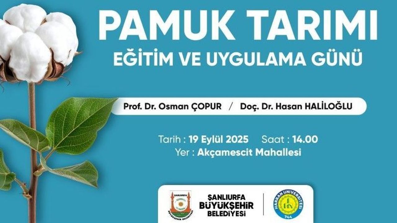 Şanlıurfa Büyükşehir Belediyesi ve Harran Üniversitesi iş birliğiyle düzenlenecek etkinlik, 19 Eylül 2025 Cuma günü saat 14.00’te Akçamescit Mahallesi’nde gerçekleştirilecek. Program kapsamında, bölgedeki pamuk tarlalarında teknik incelemeler yapılacak; pamuk bitkisinin gelişim süreci ile uygulanan tarım teknikleri yerinde değerlendirilecek.