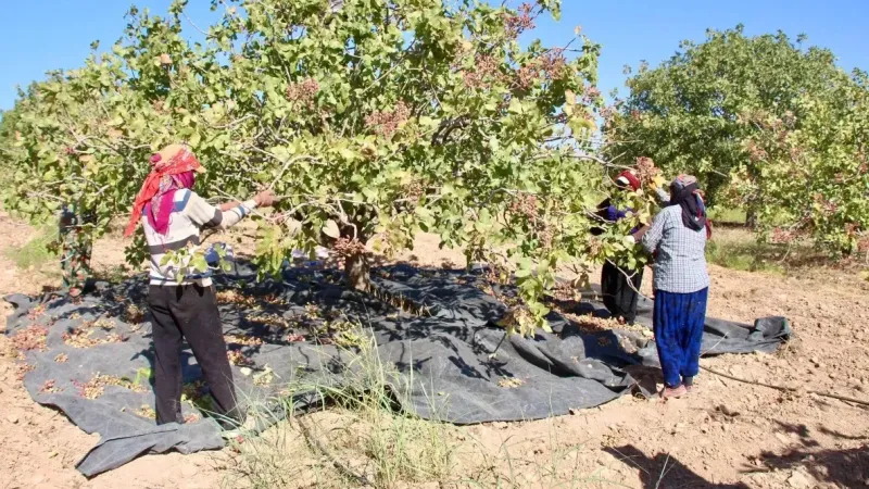 Havanın serin olduğu sabahın erken saatlerinde fıstık bahçelerine gelen işçiler, gün boyu süren hummalı bir çalışmayla fıstıkları topluyor. Yaklaşık 8 saat süren çalışmanın ardından toplanan fıstıklar, kamyonlarla fabrikaya taşınıyor. Yağışın az olması nedeniyle bu yıl verimin geçtiğimiz yıllara göre daha düşük olduğu belirtildi.