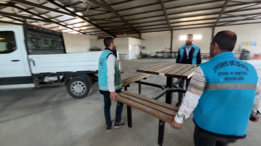 Eyyübiye Belediye Başkanı Mehmet Kuş’un, kurumun imkânlarını verimli kullanmak ve tasarruf sağlamak amacıyla geliştirdiği atölye, ilçedeki tüm parkların açık hava mobilyası ihtiyaçlarını karşılıyor. Banklar, piknik masaları ve kamelyaların belediye personelinin el emeği, alın teriyle üretilmesi ise memnuniyetle karşılanıyor.