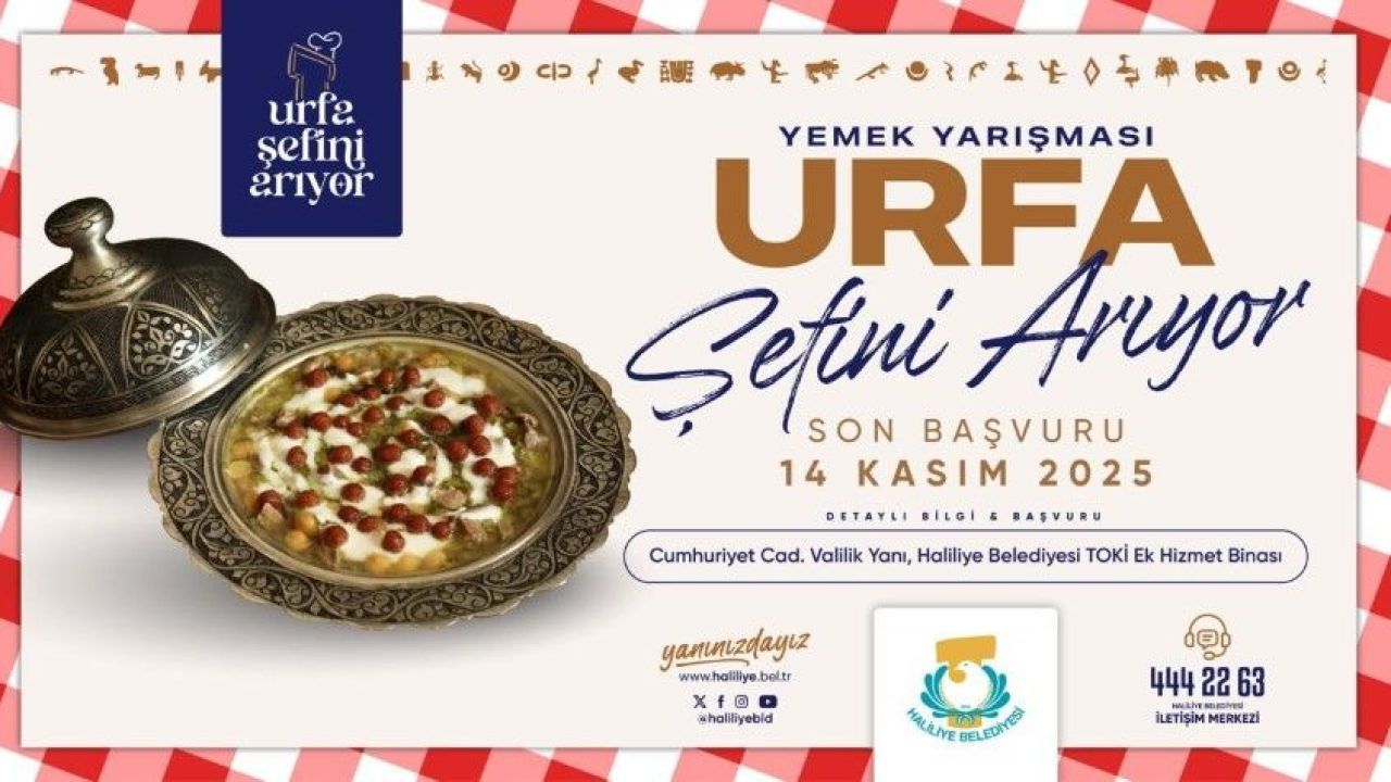 Haliliye Belediyesi, yöresel tatların yaşatılması ve gastronomi turizmine katkı sunulması amacıyla “Urfa Şefini Arıyor” adlı yemek yarışması düzenliyor. Başvurular 14 Kasım’a kadar devam edecek.