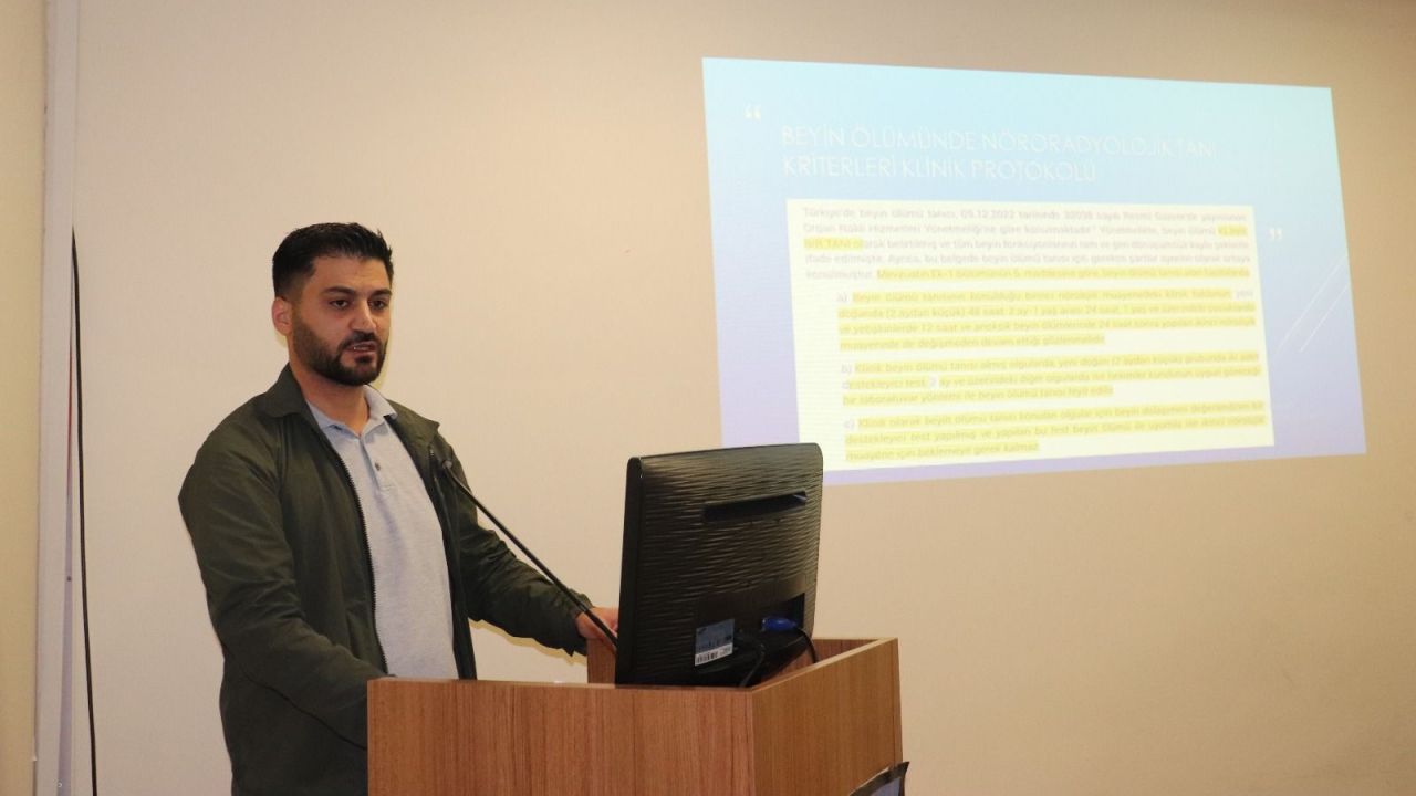 Radyoloji Anabilim Dalı Dr. Öğr. Üyesi Eyüp Kaya ise “Beyin Ölümü Tanısında Radyolojik İncelemeler” başlıklı eğitim seminerinde, beyin ölümü tanısında görüntüleme yöntemlerinin rolüne değindi. Dr. Kaya, “Radyolojik incelemeler tanının doğrulanmasında büyük önem taşır. Bu konuda doğru ve hızlı değerlendirme, organ bağış sürecinin en kritik aşamasıdır.” dedi. Etkinlik kapsamında, organ bağışının toplumsal önemi vurgulanarak sağlık çalışanlarının bilgi ve farkındalık düzeyinin artırılması hedeflendi.