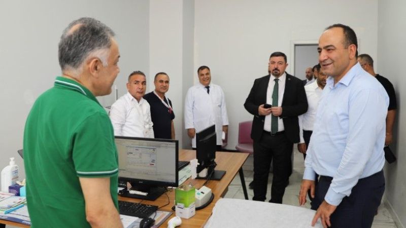 Dr. Berk, hastane başhekimi Dt. Abdullah Arserim ile birlikte hastanedeki klinik düzen, poliklinik hizmetlerinin işleyişi, diş hekimlerinin hasta kabul kapasiteleri, protez laboratuvarı iş akışları, sterilizasyon alanları ve görüntüleme birimlerini yakından inceledi. Ayrıca, Merkezi Hekim Randevu Sistemi (MHRS) kapasitesi ve doluluk oranları ile radyoloji hizmetlerinin bekleme süreleri gibi konular detaylı şekilde ele alındı.