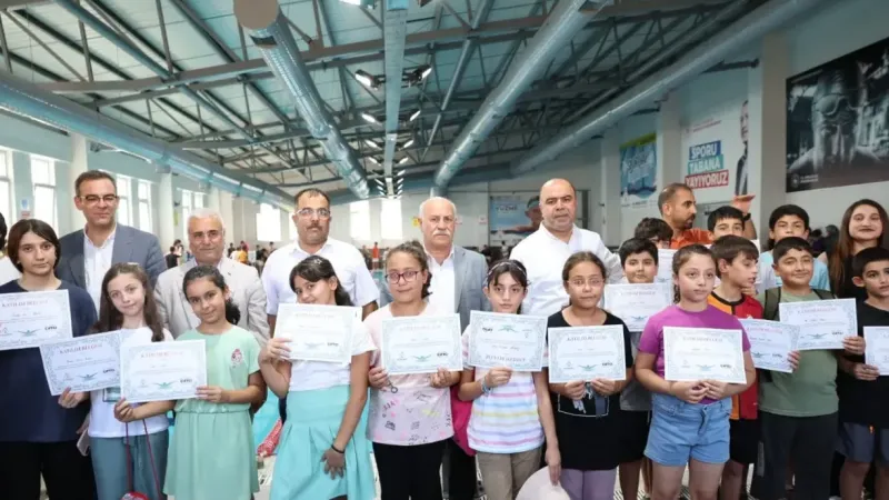 Spor İşleri Müdürlüğü bünyesinde 7-14 yaş arası çocuklar için “Yüzme Bilmeyen Kalmasın” projesi kapsamında açılan kursları tamamlayan 250 öğrenci, Doğukent Kapalı Yüzme Havuzunda düzenlenen törenle sertifikalarını aldı. Törene Başkan Nihat Çiftçi, Belediye Başkan Yardımcıları, kurs öğrencileri ve aileleri katıldı. Başkan Çiftçi, minik yüzücüleri tebrik ederek sertifikalarını takdim etti.
