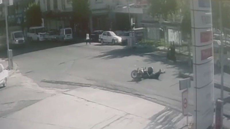Kazada motosiklet sürücüsü hafif şekilde yaralanırken, otomobil sürücüsü olay yerinden kaçarak uzaklaştı. Kaza anı, çevredeki bir iş yerinin güvenlik kamerasına saniye saniye yansıdı.