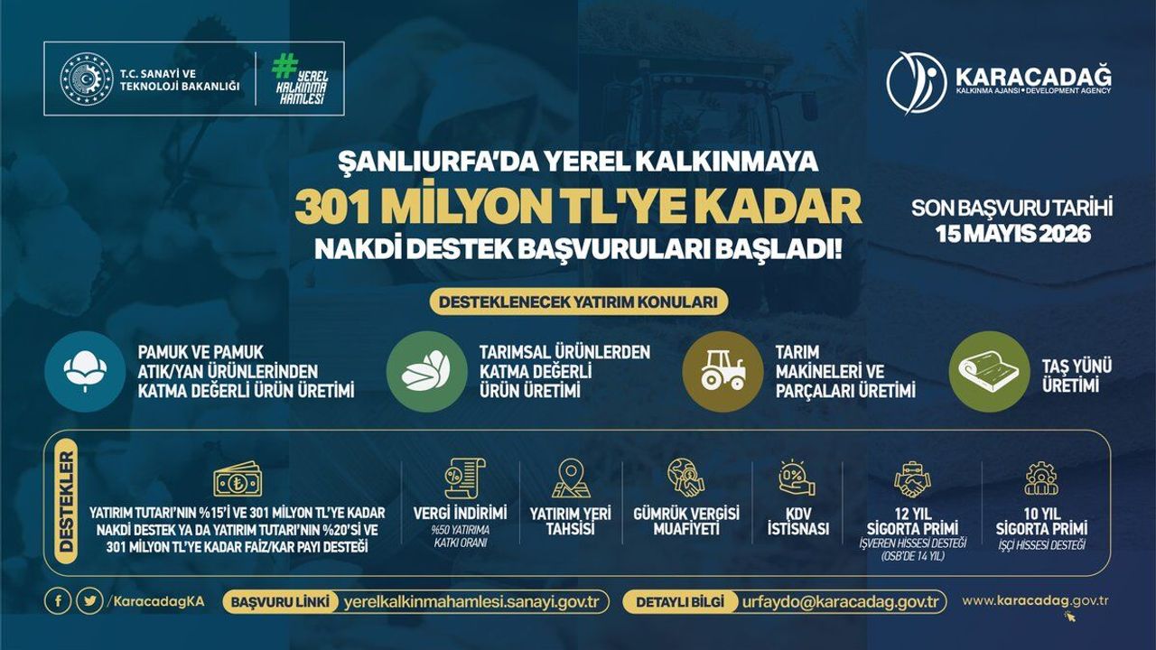 Açıklamada, Yerel Kalkınma Hamlesi Teşvik Programı kapsamında proje başına 301 milyon TL’ye kadar nakdi destek sağlanacağı belirtildi. Program için son başvuru tarihinin 15 Mayıs 2026 olduğu bildirildi.