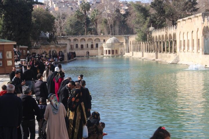 Şanlıurfa’nın en önemli inanç ve turizm merkezlerinden biri olan Balıklıgöl, Ramazan ayında kente gelen ziyaretçilerin ilk durakları arasında yer alıyor. Gün boyunca göl çevresinde dolaşan ziyaretçiler, kutsal kabul edilen balıklara yem atarak dua ediyor ve bu anlamlı atmosferi hatıra fotoğraflarıyla ölümsüzleştiriyor.