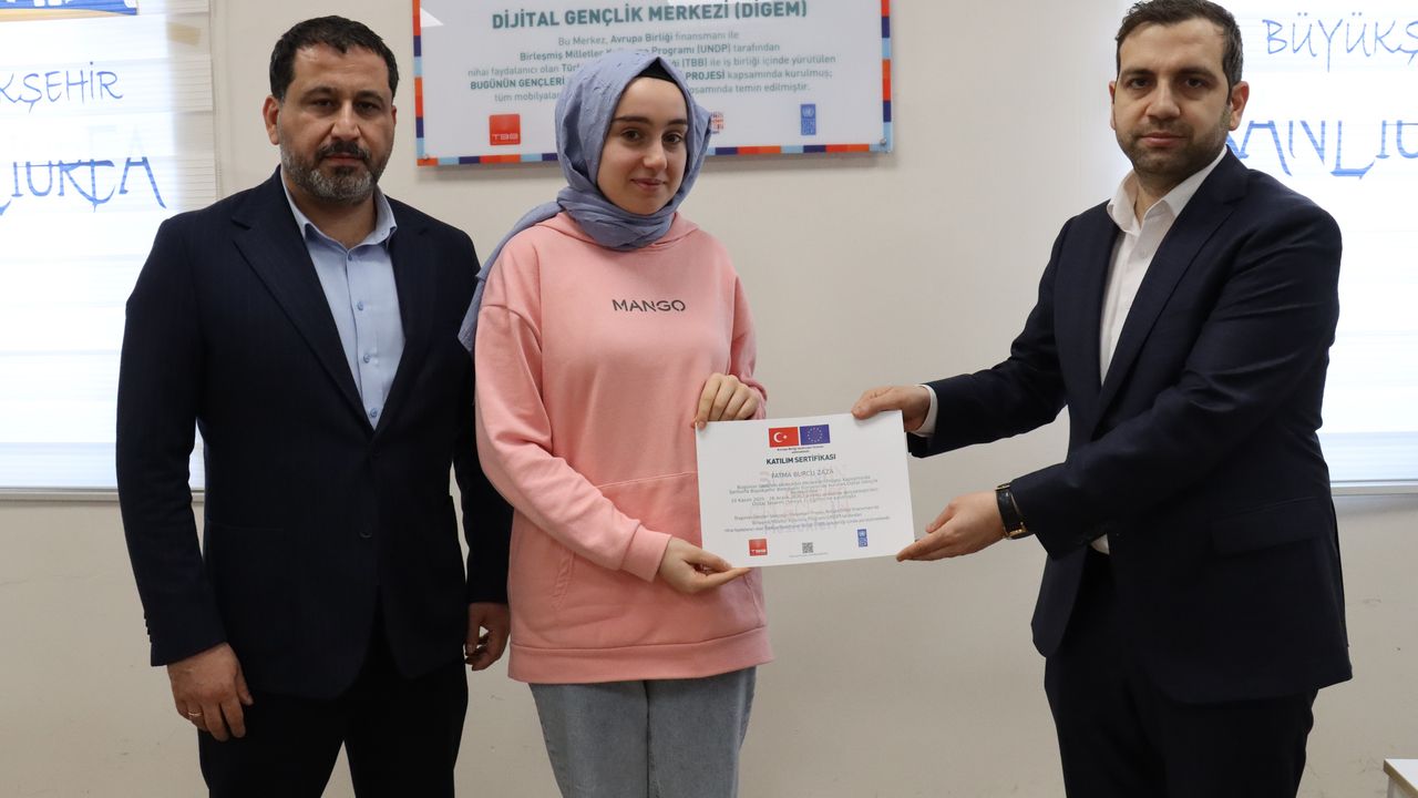 Şanlıurfa Büyükşehir Belediyesi tarafından hayata geçirilen AB finansmanında, TBB ve UNDP iş birliği ile yürütülen ‘’Bugünün Gençleri Geleceğin Meslekleri’’ Projesi kapsamında DİGEM’de açılan bilgisayar kurusunda başarılı olan 15 öğrenciye düzenlenen törenle sertifikaları verildi. Gençlerin iş hayatına atılmalarına olanak sağlayan Şanlıurfa Büyükşehir Belediye Gençlik ve Spor Hizmetleri Daire Başkanlığı’nın hayata geçirdiği ‘’Bugünün Gençleri Geleceğin Meslekleri’’ projesi kapsamında Esentepe Dijital Gençlik Merkezi (DİGEM)’de başlatılan 44 saatlik Dijital Tasarım Eğitimi tamamlandı. Esentepe Gençlik Merkezinde Dijital Tasarım Eğitimi programına katılarak başarı sağlayan 15 öğrenciye sertifikaları Şanlıurfa Büyükşehir Belediyesi Genel Sekreter Yardımcısı Emrah Karaca, Gençlik ve Spor Hizmetleri Daire Başkanı Mehmet Küçük ile Gençlik Hizmetleri Şube Müdürü Mehmet Fatih Gürez tarafından verildi.