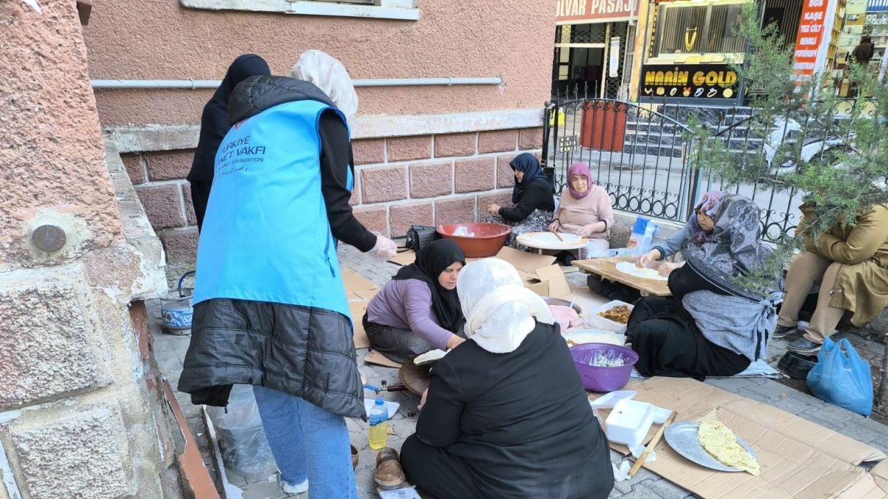 Şanlıurfa'da Filistin yararına etkinlikler devam ediyor. TDV Şanlıurfa Şubesi Kadın Kolları ve Gençlik Kolları tarafından Aile ve Dini Rehberlik Merkezi binası önünde hayır çarşısı açıldı.