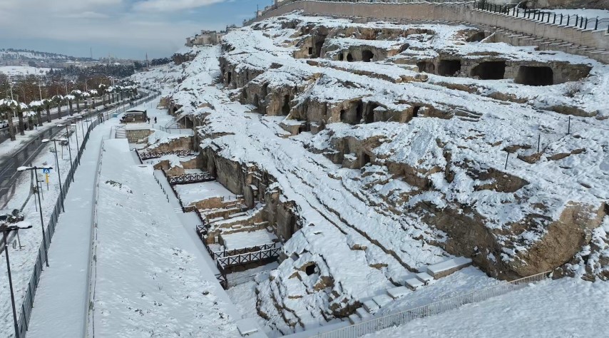 Şanlıurfa’da kar yağışı sonrası beyaza bürünen tarihi Balıklıgöl, Urfa Kalesi ve Kızılkoyun Mağaraları dron ile havadan görüntülendi. Şanlıurfa’da sabah saatlerinde etkili olan kar yağışıyla birlikte kent genelinde ve Balıklıgöl çevresinde beyaz örtü oluştu.