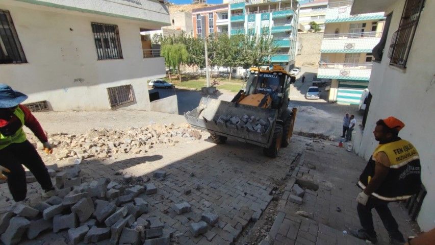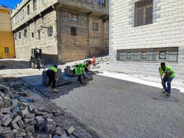 Eyyübiye Belediyesi Fen İşleri Müdürlüğü koordinesinde yürütülen yol yapım çalışmaları, dağlık kesimlerdeki mahallelerden dik ve zorlu sokaklara kadar ulaşıyor. Bazı dik sokaklara merdivenler inşa edilirken, altyapı hizmetlerinin iyileştirilmesi amacıyla yapılan kazı çalışmalarının ardından zemin düzenleme, malzeme serimi ve tesviye işlemleri gerçekleştiriliyor. Ardından kilitli parke taşları tek tek döşenerek sokaklar vatandaşın kullanımına sunuluyor.