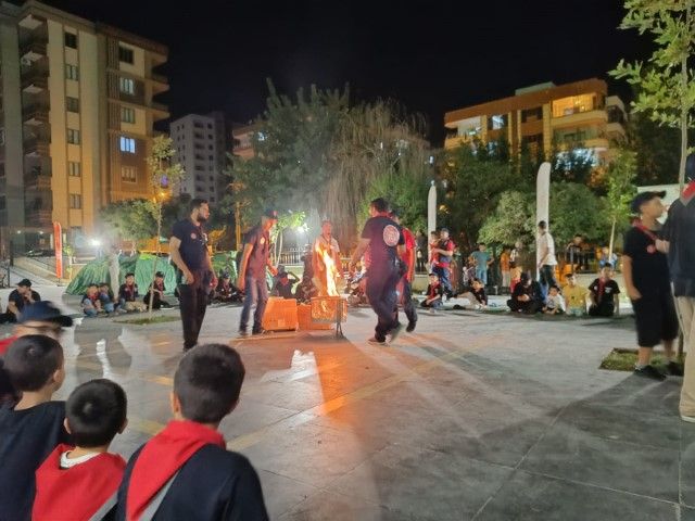 İzciler ilk geceyi cami bahçesine kurulan çadırlarda geçirerek izcilik ruhunu yaşadı. Gün boyu çeşitli oyunlarla eğlenen çocuklar, sohbetlerle kaynaştı. Gece teheccüd namazında saf tutan gençler, sabah namazından önce Kur’an-ı Kerim mukabelesi okudu ve ardından sabah namazını cemaatle kıldı.