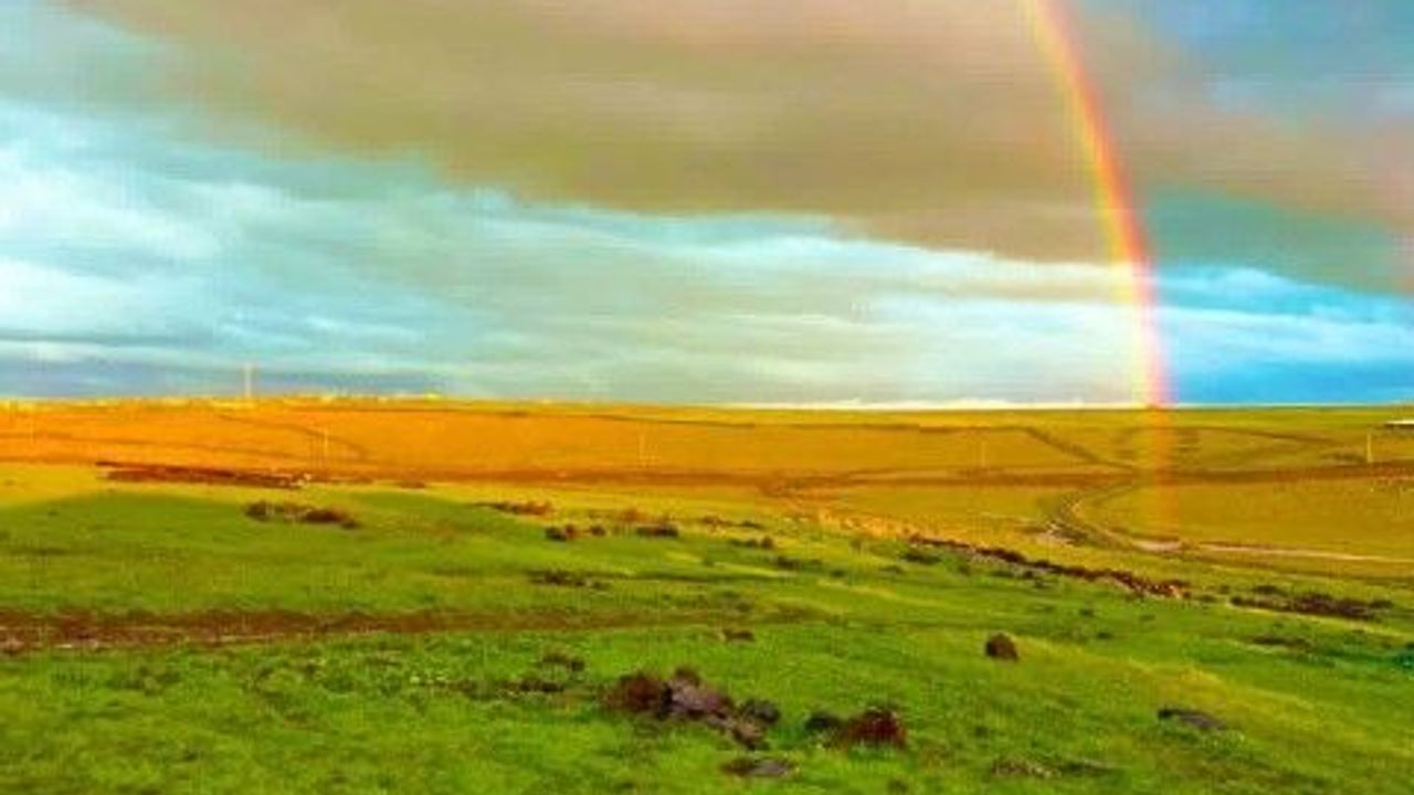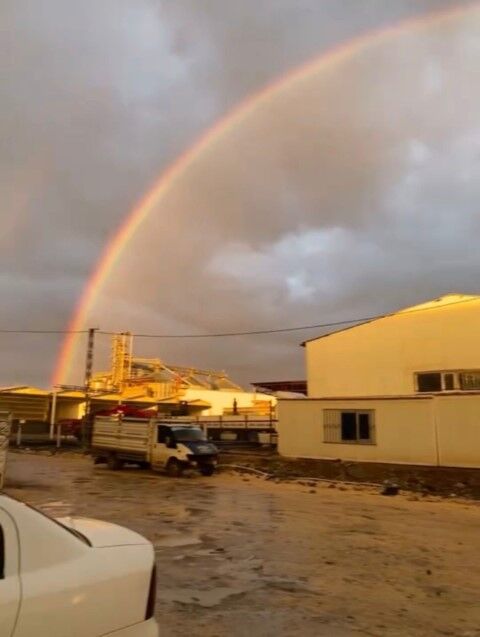 Şanlıurfa'nın Siverek ilçesinde sağanak yağışın ardından ortaya çıkan gökkuşağı eşsiz manzarasıyla mest etti.