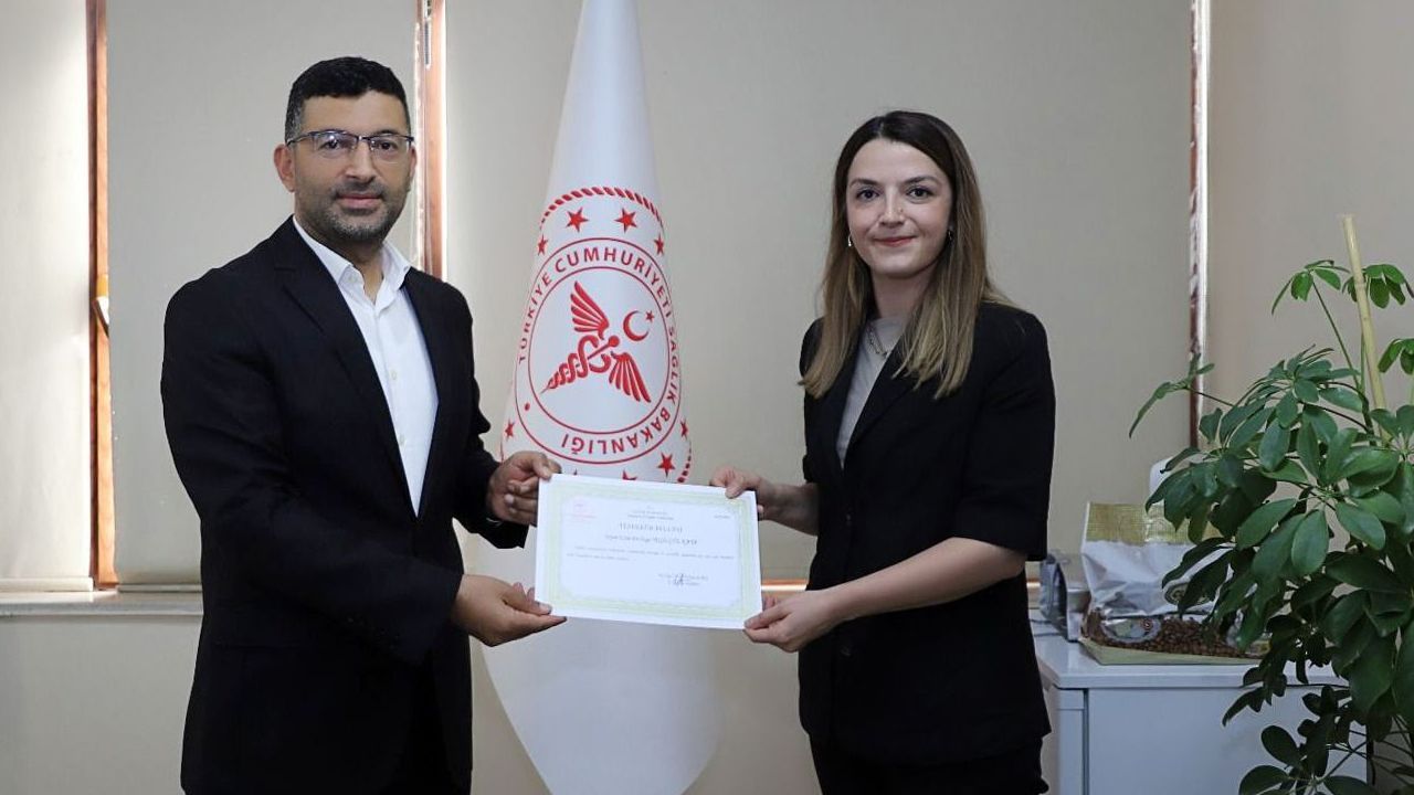 Şanlıurfa İl Sağlık Müdürlüğü Kamu Hastaneleri Hizmetleri Başkanı Doç. Dr. Ahmet Güzelçiçek tarafından, başarılı çalışmalarından dolayı Sualtı Hekimliği ve Hiperbarik Tıp Uzmanı Dr. Özge Yeşilgül Kaya'ya teşekkür belgesi takdim edildi.