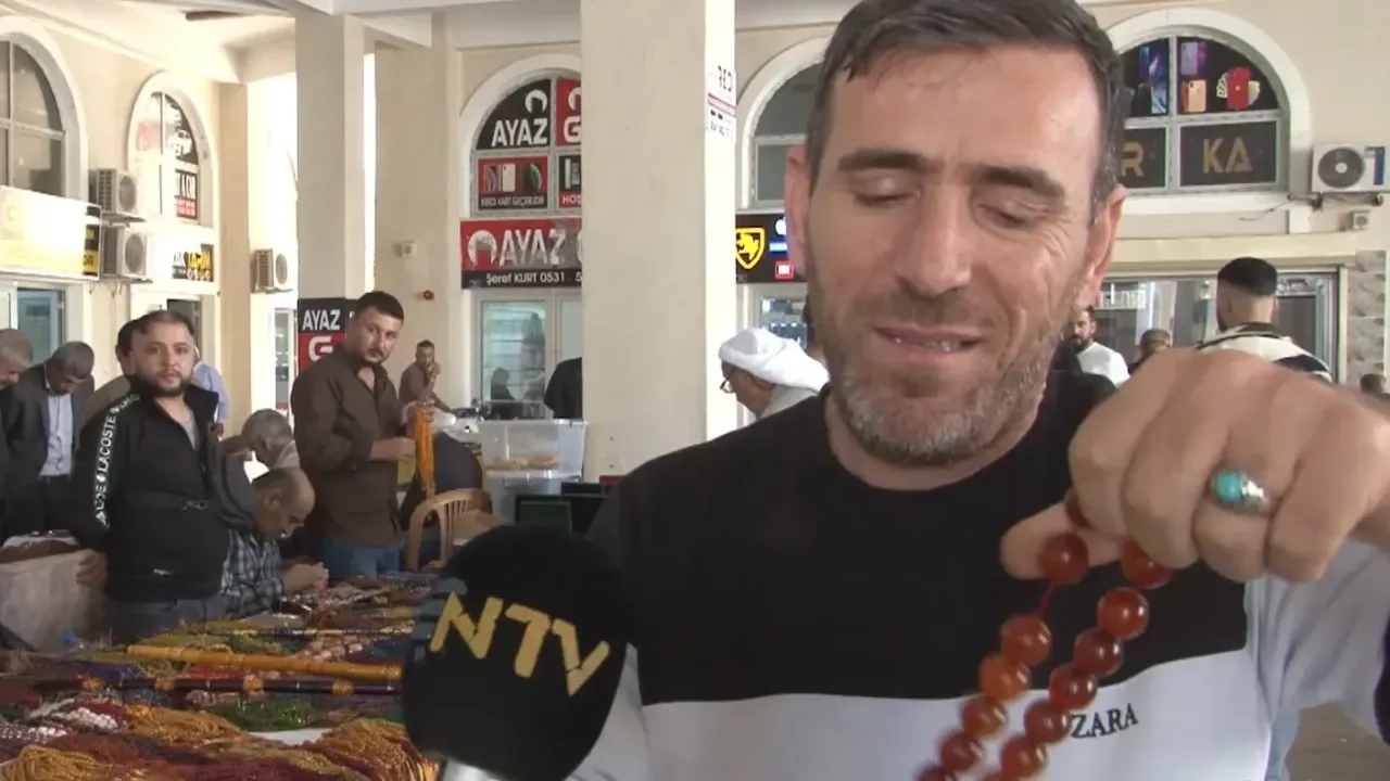 “Burası Urfa ay pazarı. Her yerden insanlar geliyor. Eski tespihler var, Osmanlı miskivileri (sıkmaları) var. İnsanlar bu tespihleri çok seviyor. Mesela şu gördüğünüz tespihler Osmanlı döneminden kalma, değeri beş bin dolar civarında. Çok sayıda tespih meraklısı buraya geliyor.”