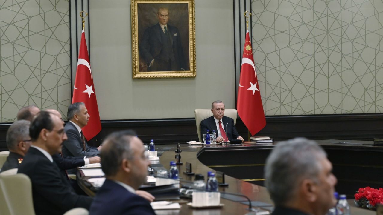 MGK, Cumhurbaşkanı Recep Tayyip Erdoğan'ın başkanlığında Cumhurbaşkanlığı Külliyesi'nde toplandı. 2 saat 15 dakika süren toplantının sonrasında İletişim Başkanlığı tarafından 7 maddelik bildiri yayımlandı.
