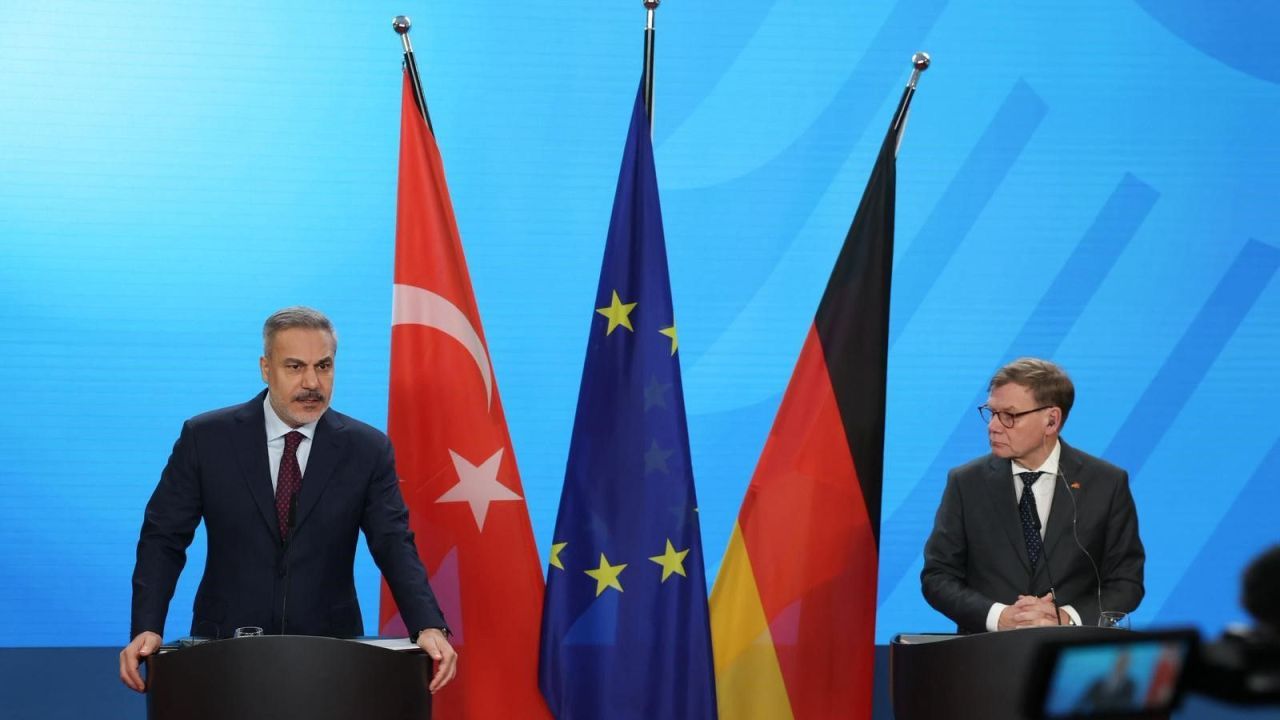 Fidan, Almanya’nın başkenti Berlin’de Almanya Dışişleri Bakanı Johann Wadephul ile gerçekleştirdiği görüşmenin ardından düzenlenen ortak basın toplantısında, AB ile ilişkiler ve bölgesel gelişmeler hakkında açıklamalarda bulundu.