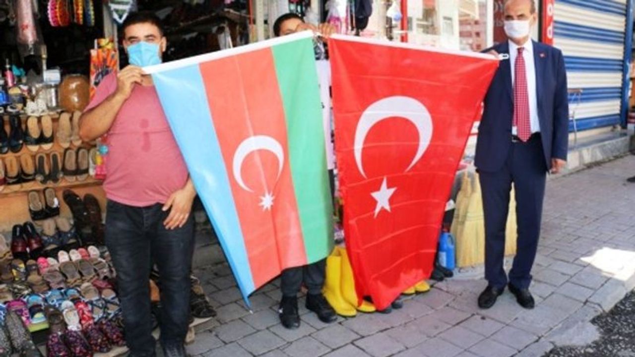 Şanlıurfa-Suriye sınırının sıfır noktasındaki Akçakale'den Azerbaycan'a destek geldi.