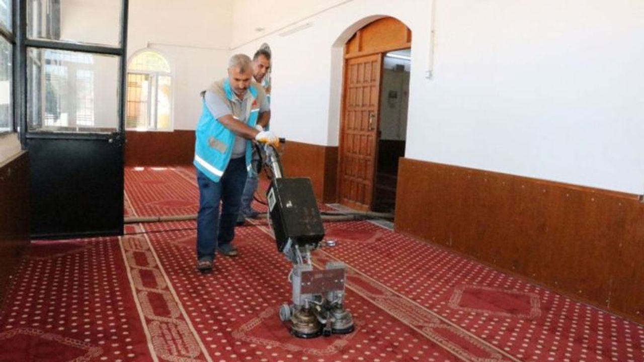 Haliliye Belediyesi Temizlikİşleri Müdürlüğü, Belediye Başkanı Mehmet Canpolat"ın talimatlarıyla ilçegenelindeki ibadethaneleri Kurban Bayramına hazırlıyor. Bayram öncesi ilçede bulunancami ve mescitlerin halılarını yerinde temizleyen ekipler, gül suyu iletemizlik çalışmalarını devam ettiriyor....