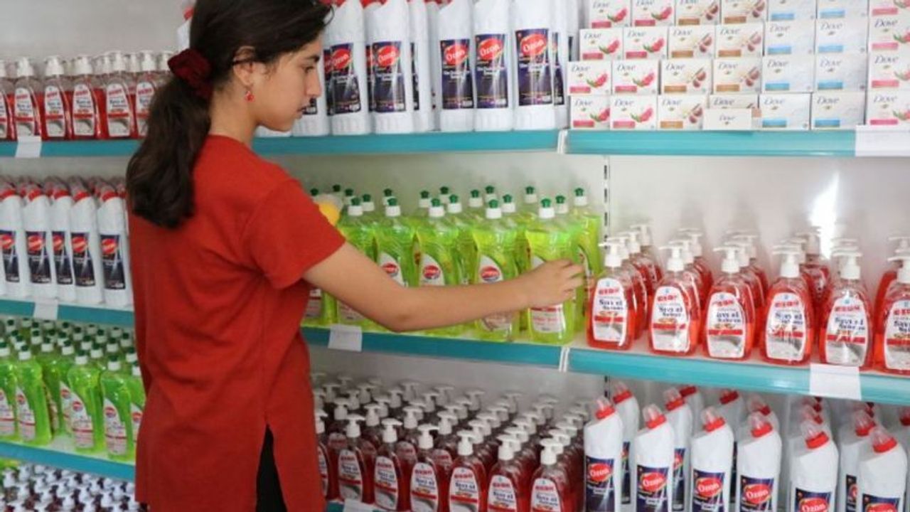 Ahmet Yesevi Mahallesinde kurulan Market ile atığınıgötüren vatandaşlara temizlik malzemeleri veriliyor.