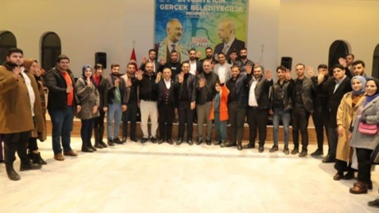 Eyyübiye Millet Bahçesi"nde gerçekleştirilen toplantıya, AK Parti Eyyübiye İlçe Başkanı Mehmet Moğal, Kadın Kolları Başkanı Gülten Balcı, Gençlik Kolları Başkanı Hamza Göktaş, Seçim Koordinasyon Merkezi İlçe Başkanı Ömer Baykuş, AK...