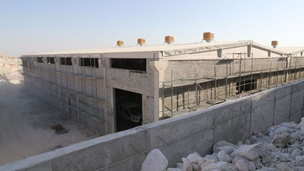 BaşkanYardımcısı Mehmet Elgün ve Meclis Üyesi Necmettin Sağlam ve belediye birim amirleriyleinşaat çalışmaları devam eden fabrika binası...