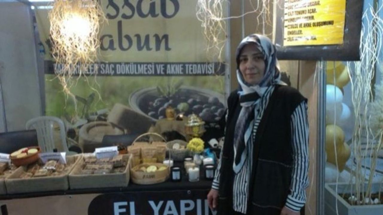 İsmim Esra Uçar, bende gıda ve yöresel ürünler fuarına katıldım, ben sabun yapıyorum, doğal kremler yapıyorum, doğal olduğu için yöresel ürünler fuarına katıldım. Sabunlarımız saç dökülmeleri için sabunumuz var, bağışıklık...
