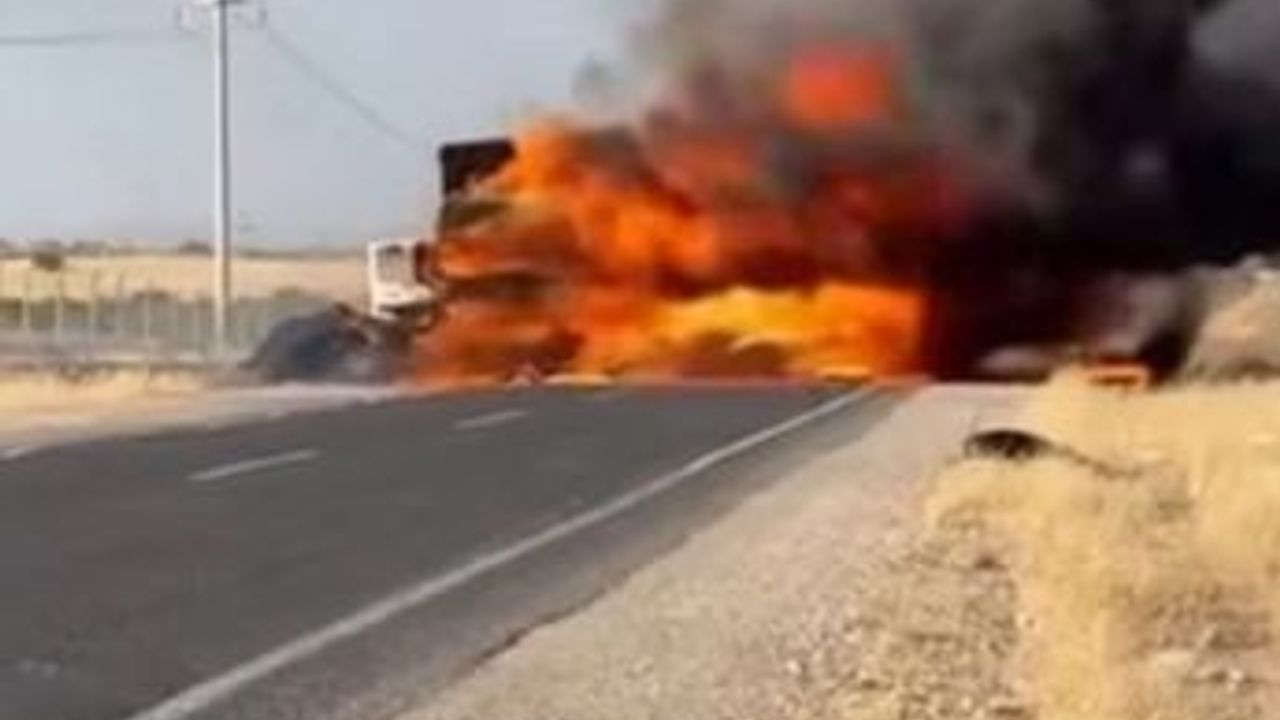 Şanlıurfa'nın Viranşehir ilçesinde, seyir halindeki tırın alev topuna döndüğü anlar cep telefonu kamerasıyla görüntülendi.