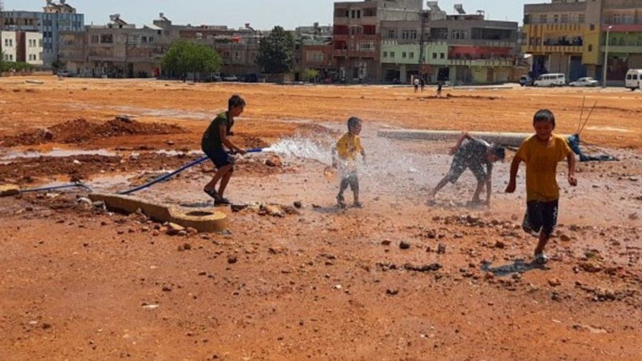 Hava sıcaklığının 40 derecenin üzerinde seyrettiği Şanlıurfa"da sıcaktan bunalan çocuklar, hortumla birbirlerini ıslatarak serinlemeye çalışıyor. Eyyübiye ilçesine bağlı Onikiler Mahallesindeki kentsel dönüşüm alanında oyun oynayan çocukların, su borusuna bağlanan hortumu...