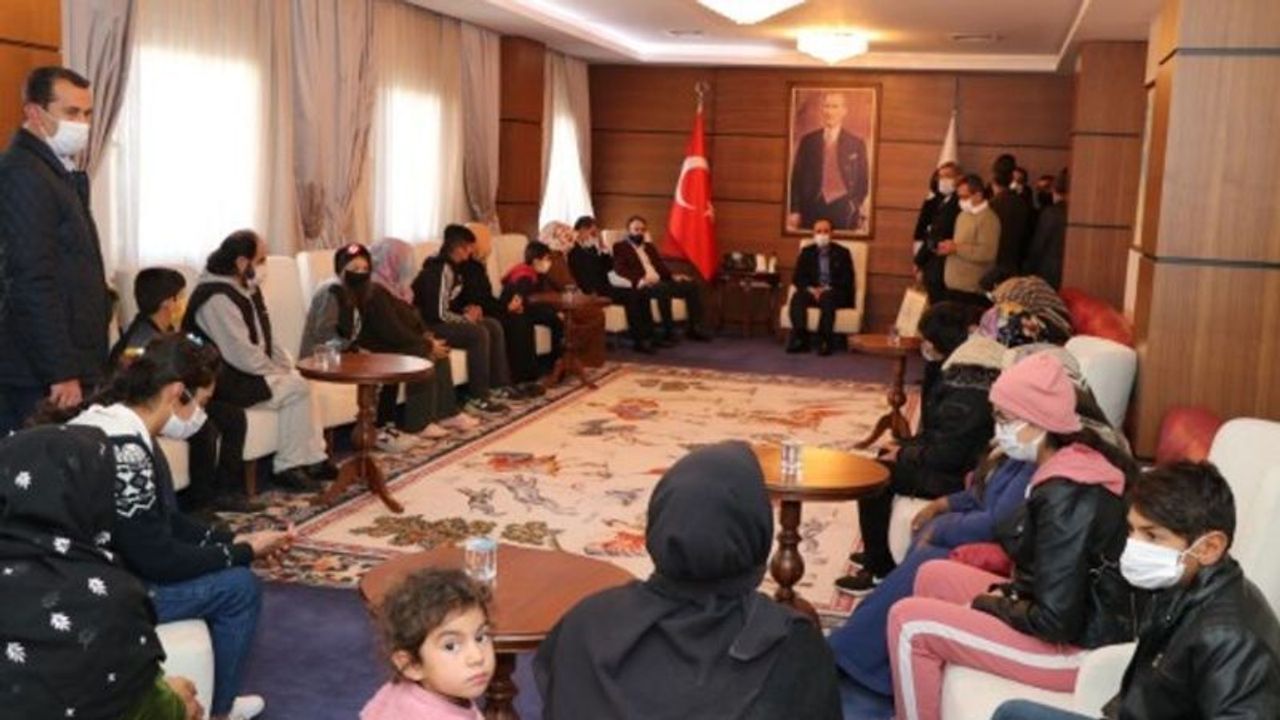 Proje kapsamındadesteklenen 10 çocuğu aileleri ile birlikte Valilik Şeref Salonunda kabul edenŞanlıurfa Valisi Abdullah Erin, Vali Yardımcısı İsmail Çetinkaya, ŞURKAV GenelSekreteri Şükrü Üzümcü, Proje Koordinatörü Neşe Beşir ve projede görev...