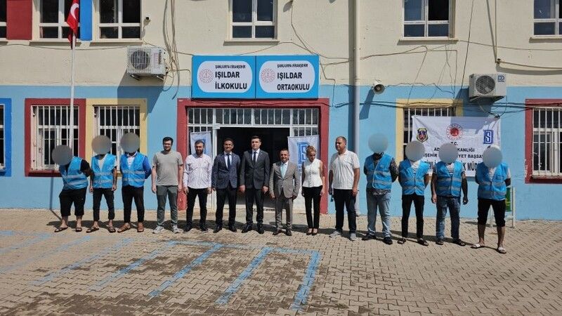 Çalışmaları yerinde inceleyen Viranşehir Cumhuriyet Başsavcısı Batuhan Sandal, Denetimli Serbestlik Müdürü Hakan Hoşgören ve İlçe Milli Eğitim Müdürü Çetin Gören, okulların son durumu hakkında bilgi aldı.